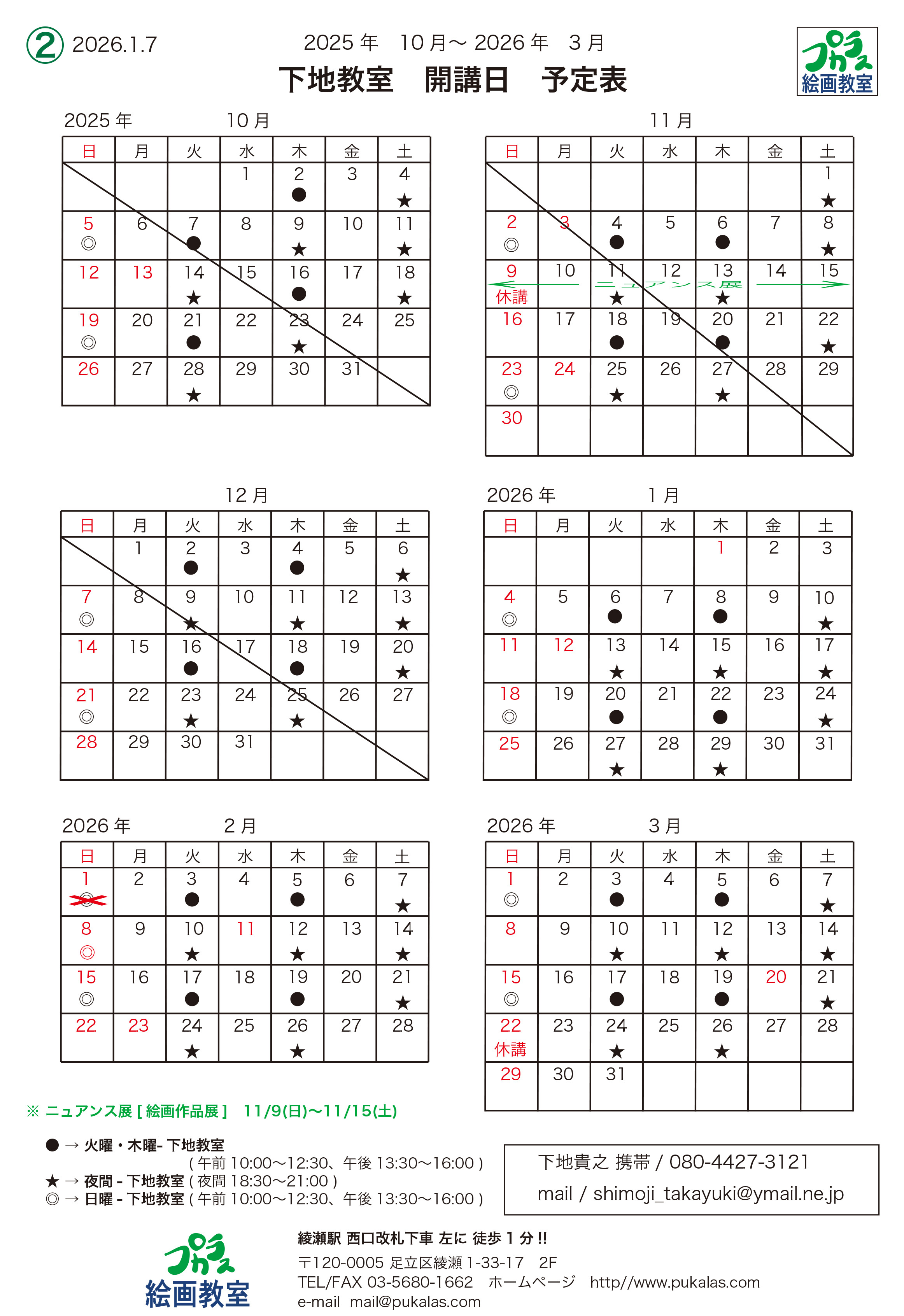 下地教室 スケジュール 2025年 10月〜2026年 3月 A