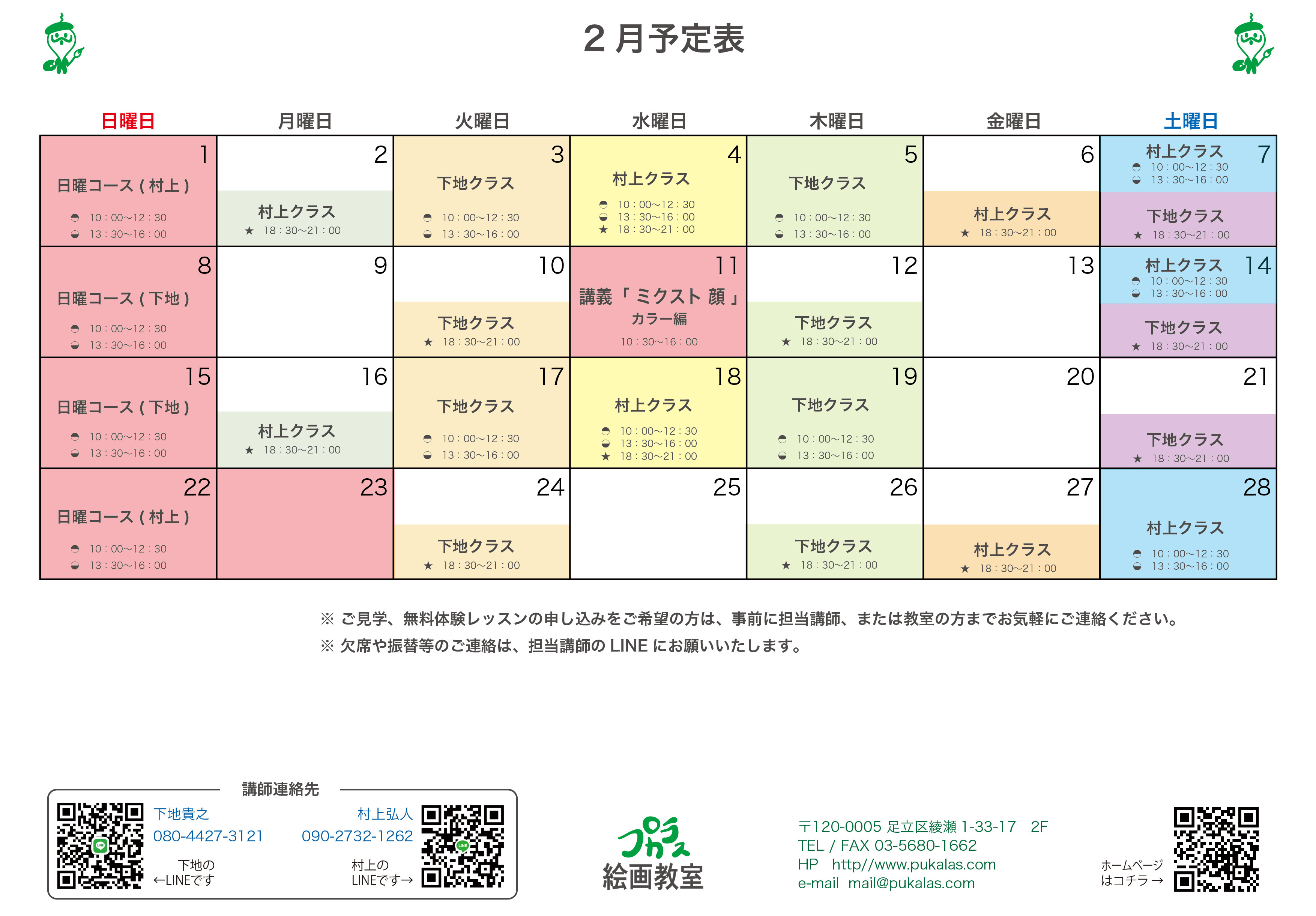 ※ 2/1(第一日曜日)、2/8(第二日曜日)の講師が変更になりました。<2026.1.7>